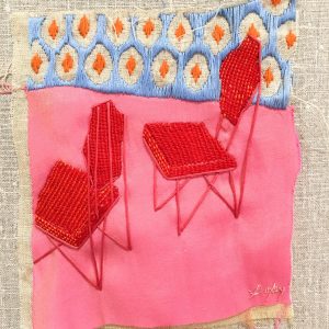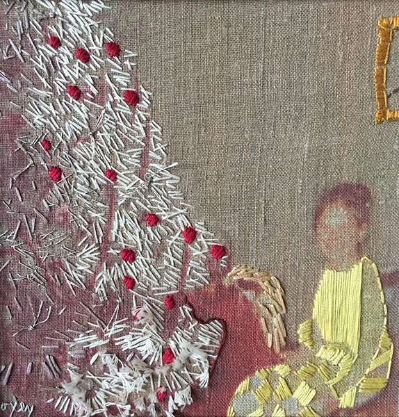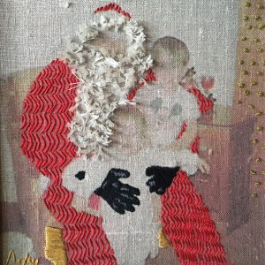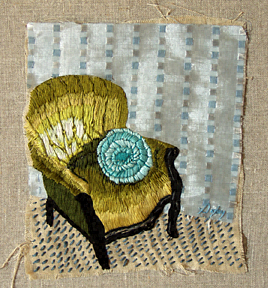 The Stitching Years represents a body of work created by mixed-media artist Downy Doxey-Marshall between 2004-08. Armed with a palette of thread and the power of nostalgia, her work speaks to the impact of clothing and furniture in our daily lives. She creates tactile portraits featuring these treasured objects, which often become synonymous with the people who wear and use them.