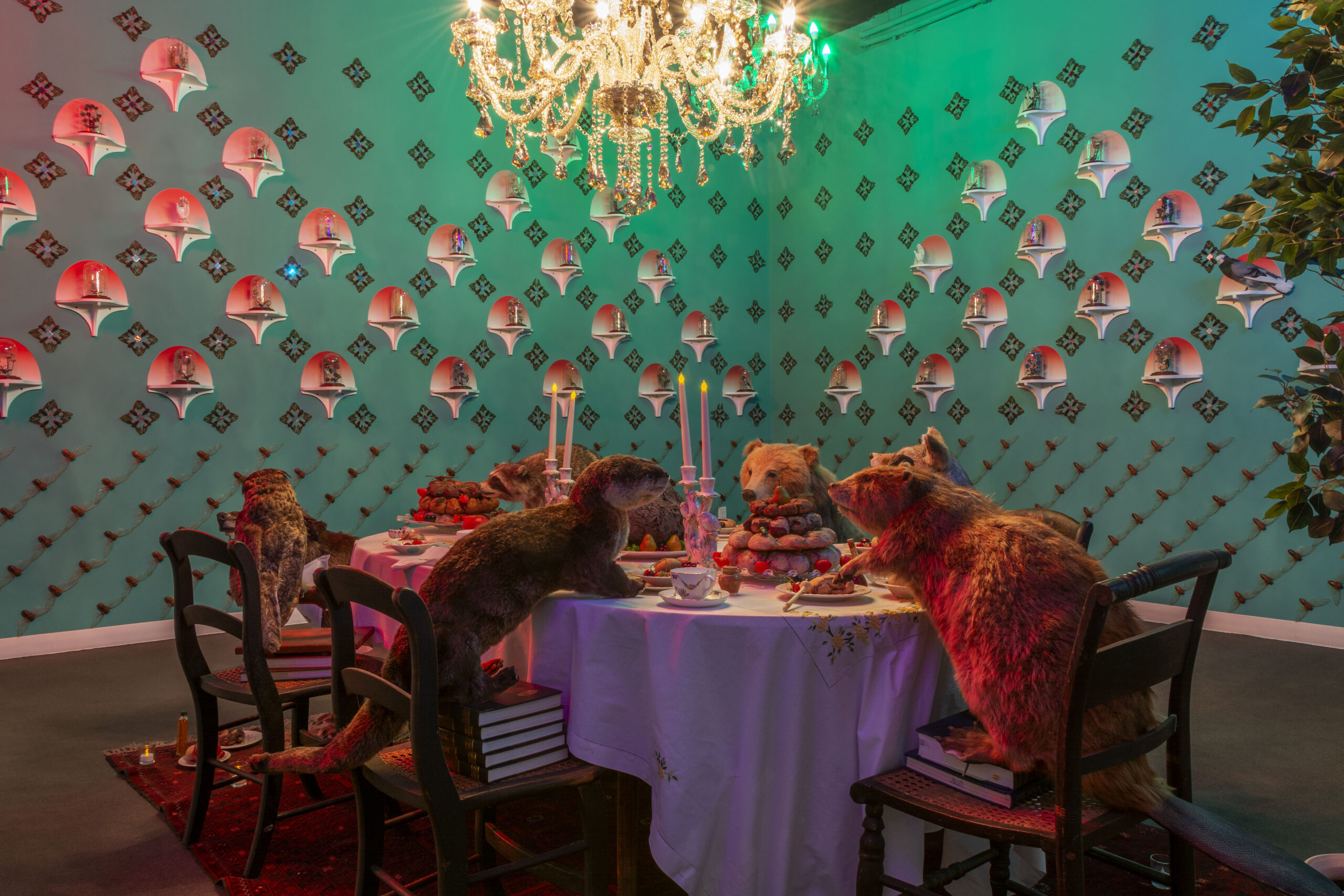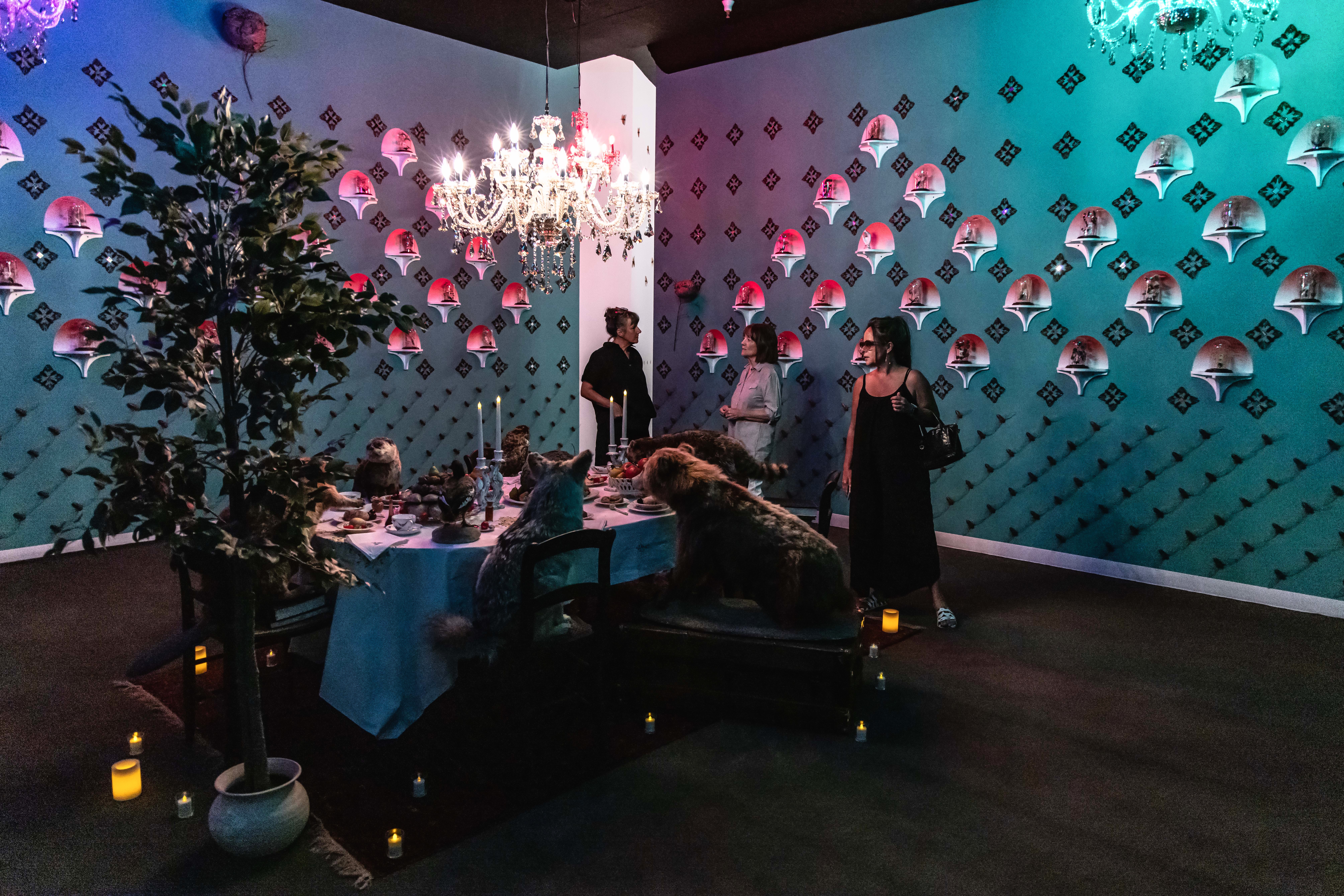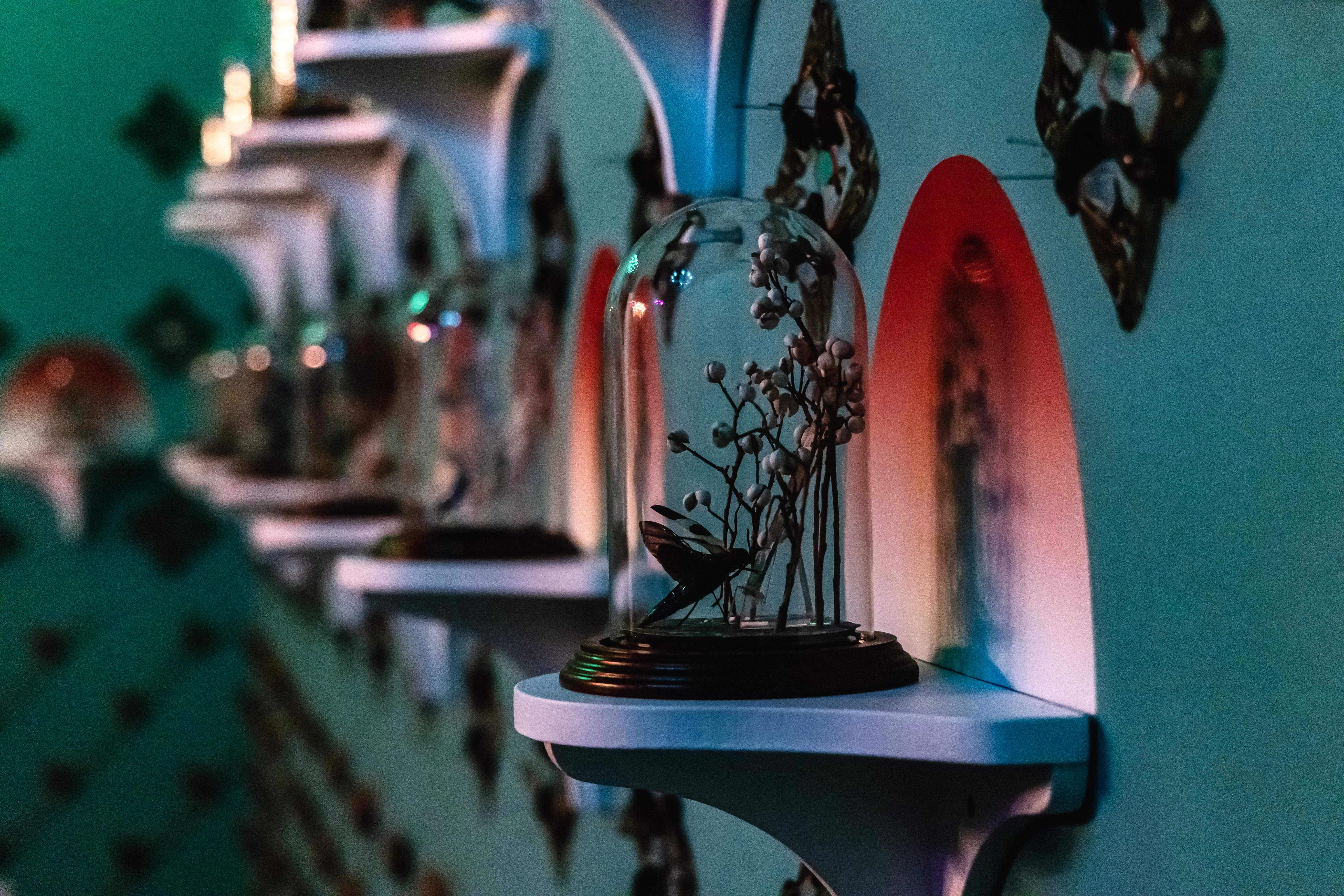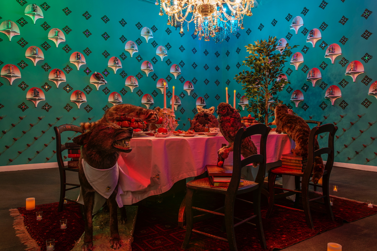 In Eat Me, Drink Me, Jennifer Angus’s whimsical installation inspires a sense of unabashed wonder. Using insects and other wildlife in unexpected and playful ways, she invites viewers to return to a state of childlike curiosity and discovery while posing pressing questions about our relationship with the natural world.Creating beautiful, highly intricate patterns by pinning thousands of insect specimens to a wall, Jennifer Angus’s installations invite both apprehension and wonder. Her work seeks to provoke a series of increasingly urgent questions about our perceptions and what we value and protect: Are we big or small? Do individuals make a difference? What are the stories we need to tell, and those we need to change?