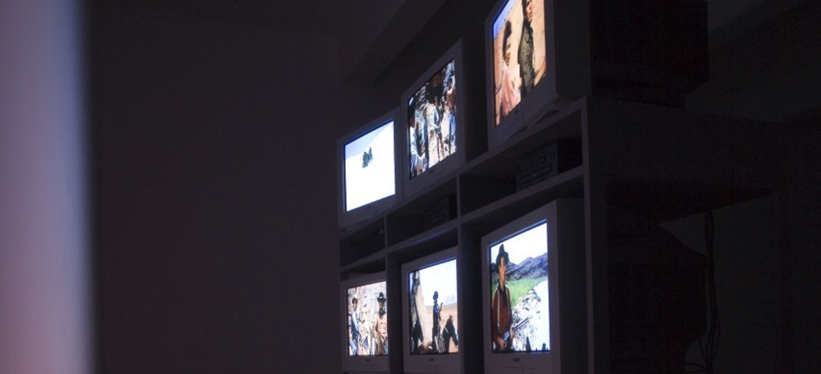 Spencer Finch, West (Sunset in my motel room, Monument Valley, January 26, 2007, 5:36-6:06 pm), 2007. 9-channel synchronized video installation with 9 TV monitors, 9 Brightsign media players and sync unit, 31 minutes 5 seconds. Courtesy of the artist, James Cohan Gallery, New York, and Galerie Nordenhake Berlin/Stockholm/Mexico City. Photo: Carl Henrik Tillberg.