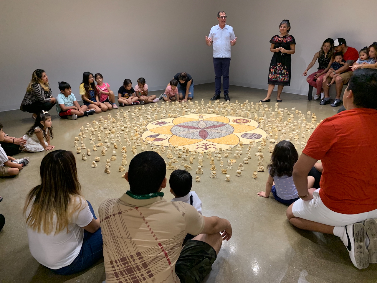 Jorge’s Corn Mandala, the sixth in an ongoing series of site-specific installations made from corn, uses corn kernels to celebrate the importance of maize for Indigenous cultures in the Americas.